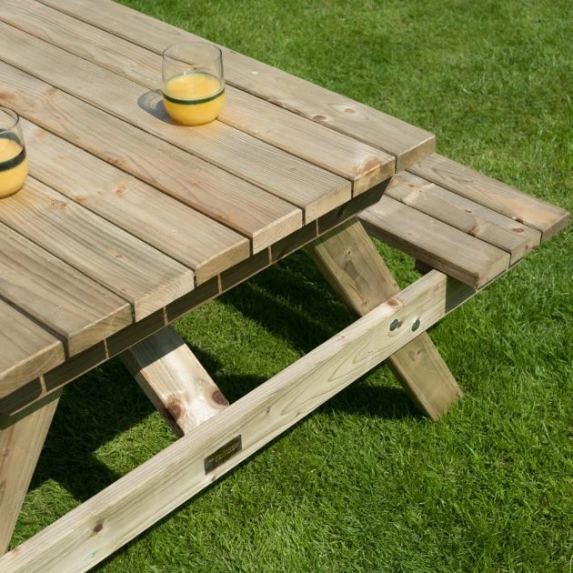 6ft Picnic Bench: The 6ft Picnic Bench by Rowlinson can seat up to 8 people and has been pressure treated to protect it against rot and provided in a natural timber finish or you can paint to your desired colour to suit. It comes part assembled as the Table top and Seats are completed and all fixtures, fittings and instructions come included. This is the ideal seat to compliment any garden and is great for friends and family to entertain whilst hosting a BBQ in the summer or can even be used commercially in pubs and beer garden settings.