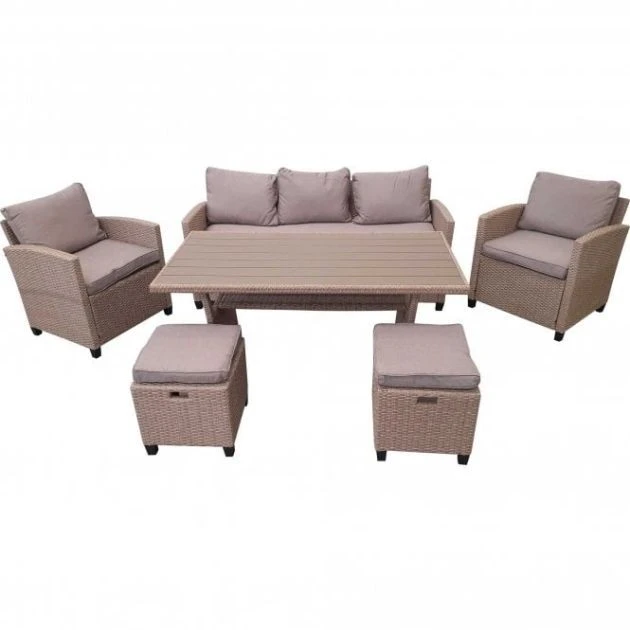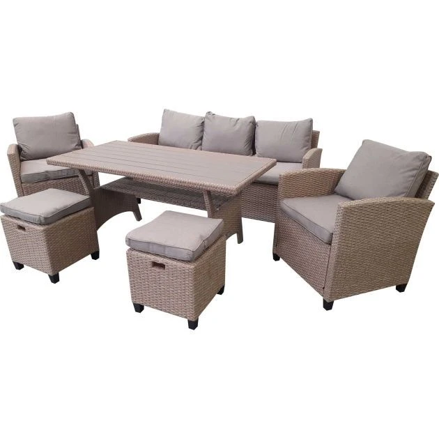 Rowlinson Albany Rattan Sofa Dining Set Oatmeal 7 Seat