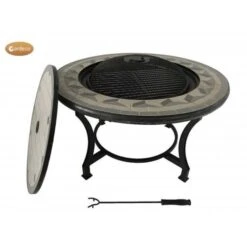 Tile Mosaic Fire Bowl Table Inc BBQ Grill And Matching Closing Lid