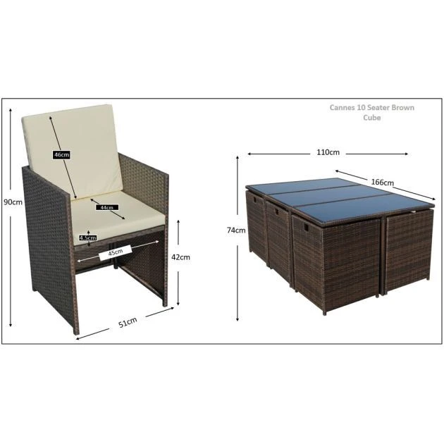 | Product Specification | Royalcraft Cannes 10 Seater Cube Set: Dimensions: