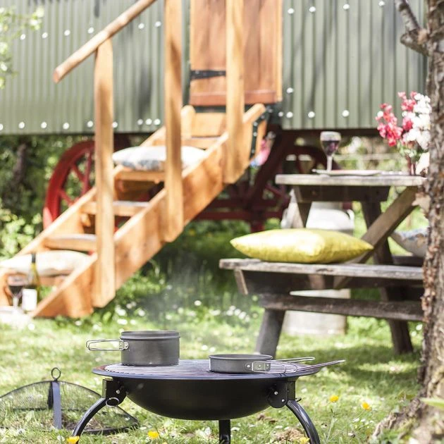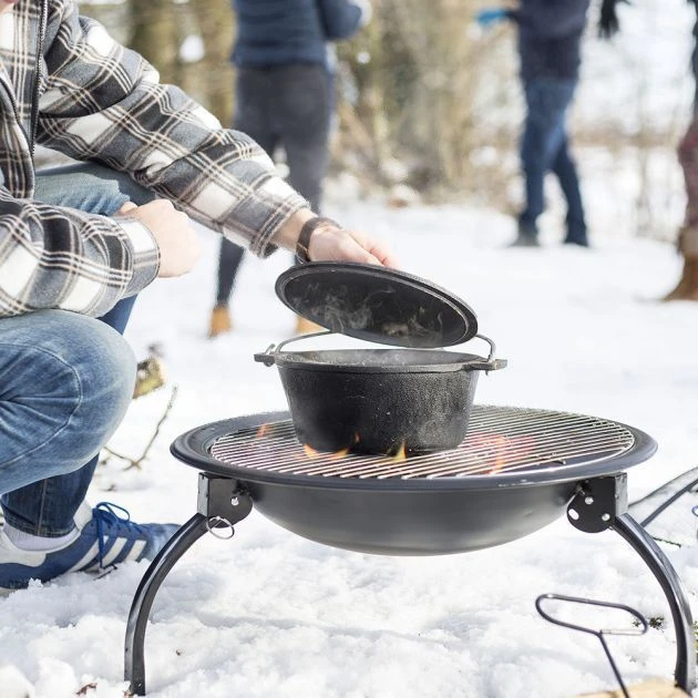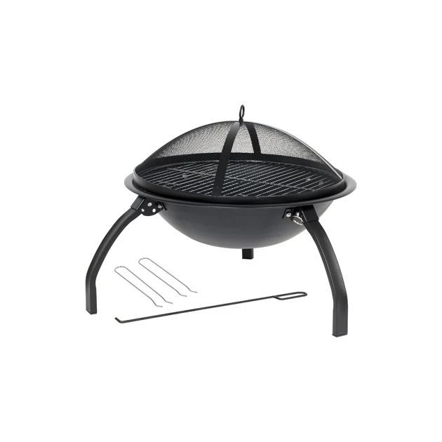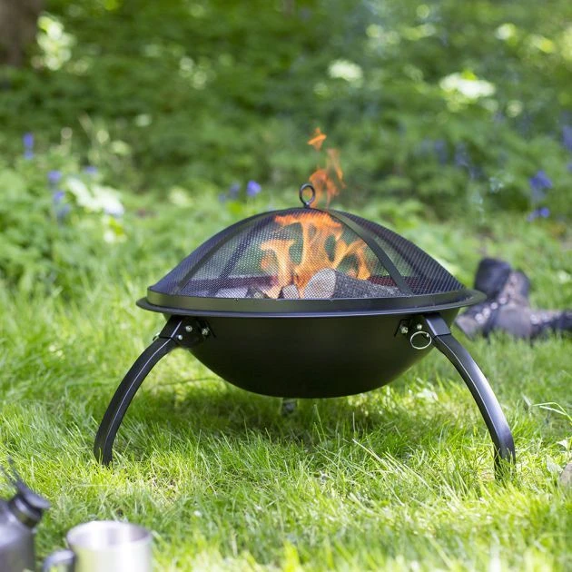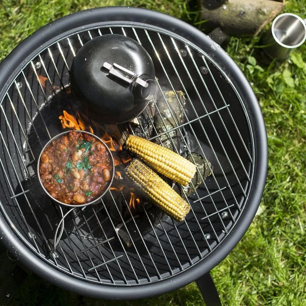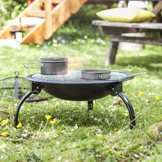 Lightweight and easy to transport due to foldable legs, a durable matt black powder coating covers each surface, and it can be fuelled by either logs that you find nearby or charcoal.