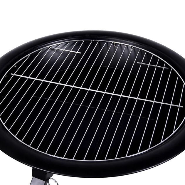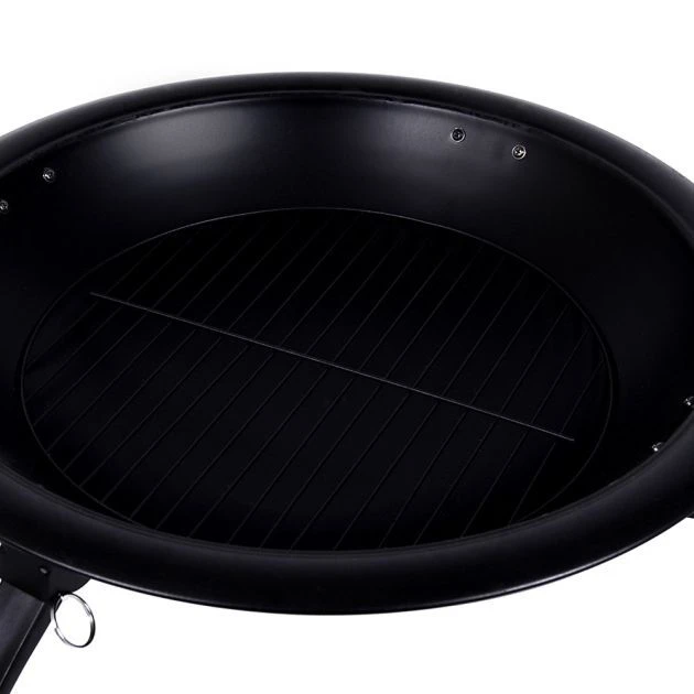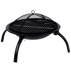 This beautifully crafted traditional steel fire pit is sure to be the perfect heating option for your garden patio, terrace or when your camping. Not only does it look good, it creates warmth and is easy to use. This fire pit features a fire bowl, mesh cover, charcoal grate, cooking grill, a poker and three foldable legs making this portable pit easy to carry. Made from sturdy and durable steel, this pit can be used as a barbecue and is easy to clean and maintain.