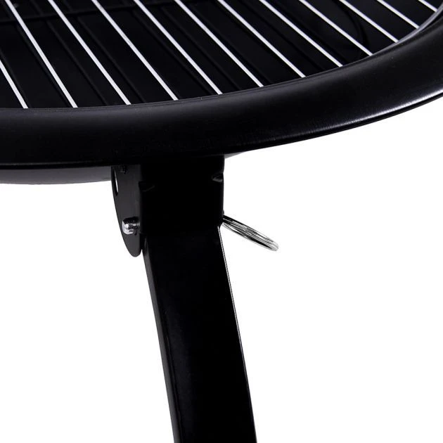 - Includes: fire bowl, mesh cover, charcoal grate, cooking grill, a poker and three foldable legs