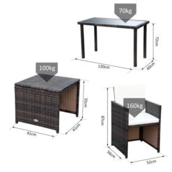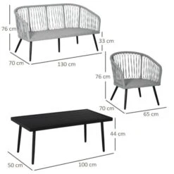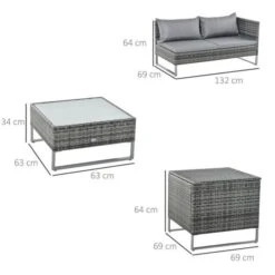 OUTSUNNY Rattan Round Dining Set With Glass Tabletop Grey 4-Seater