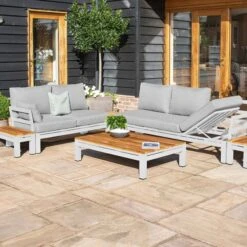 Maze Oslo Large Corner Group With Teak Coffee Table Aluminium White
