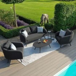 Maze Outdoor Fabric Ambition Oval Dining Set 6 Seater Flanelle