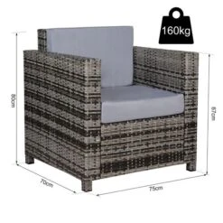 OUTSUNNY Rattan 3-Piece Bistro Set With Cushions Grey 2-Seater