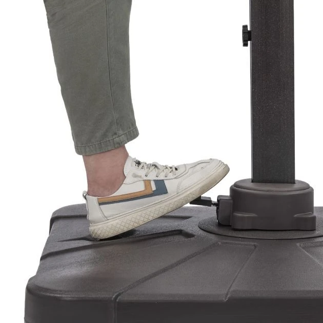 Grey Polyester 3m Square Cantilever Parasol + 100kg Base: The Royalcraft 3m square Cantilever Parasol can be used within your dining tables or as a free-standing parasol provided you use a weighted base to keep the parasol in place. This product features six adjustable height points which will help you adjust the canopy position when required. The lovely grey color offers a subtle neutral effect to suit any outdoor. The frame of this parasol is made from aluminum for long term service and use.