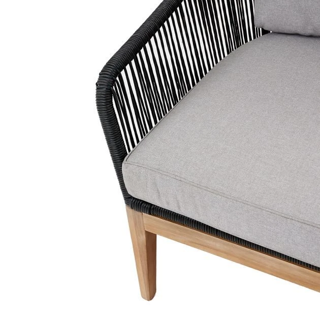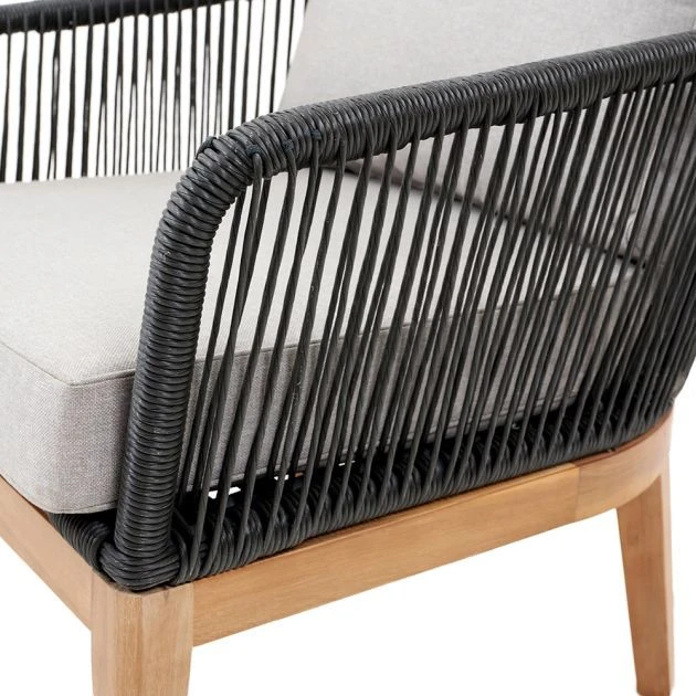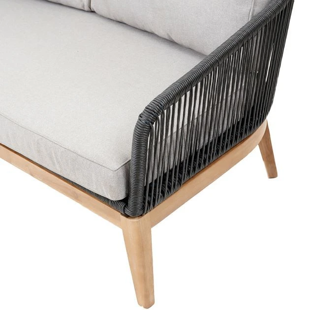 The Honolulu Lounge range offers a contemporary twist on outdoor furniture, combining Polystring and Acacia wood to create a stunning contrast that is sure to impress. With its beautiful design and durable materials, this set includes two chairs, one sofa and one coffee table in the stylish Grey Polystring. You also have the option to add matching footstools for additional seating or just to put your feet up and unwind. Rest easy knowing that all cushions comply with UK fire retardancy regulations, making this set both comfortable and safe. Measuring at 165 x 87 x 69cm for the sofa, 76 x 87 x 69cm for the chair, and 100 x 70 x 37cm for the coffee table, this furniture set is the perfect addition to any outdoor space.