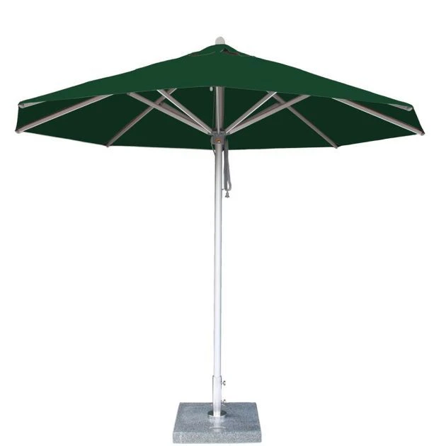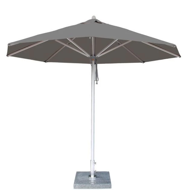 Bambrella Hurricane 2.5m Round Spuncrylic Parasol: Premium quality aluminium parasol perfect for high end and commercial use due to the extensive testing against 90mph winds to ensure absolute quality and durability. Available in 10 stunning colours of Spuncrylic fabric. This hurricane really will stand up to its namesake and remain strong even in the most adverse of weather. The parasol benefits from aluminium poles and ribs which will not rust and an easy and light opening operated by a double pulley and rope system.