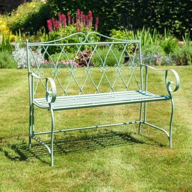 Loire Bench: This French inspired bench from Ascalon is the perfect way to add a touch of chateau chic to your garden, with delicate curves, intricate latticework and a stunning sage green finish. This bench has a folding design, perfect for stowing away if required. (EDP, or Electro-deposit primer, is a superior method of coating metal products in terms of an even coating and corrosion resistance.)