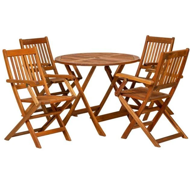 - The set includes: 4 x Folding Armchairs & 1 x 90cm Wooden Topped Round Table