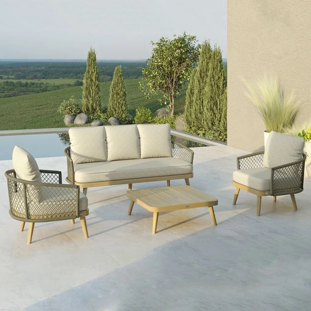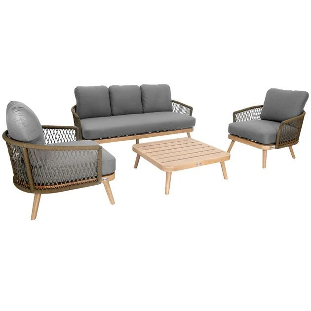 This Bali 3 Seat Lounge Set is the perfect addition to any outdoor garden space. The set includes comfortable cushions with two sets of outdoor fabric covers in Grey and Oatmeal, allowing you to match your decor seamlessly. Additionally, the set comes with a rain cover, ensuring that your furniture stays looking pristine year-round. The spacious sofa and two chairs provide ample room for family and friends to gather around the low acacia wood coffee table for drinks or snacks. The modern and sleek design of this set would look great in any outdoor space, but would be equally at home in a conservatory or sunroom. Invest in the Bali 3 Seat Lounge Set and enjoy comfortable and stylish outdoor seating for years to come.Â