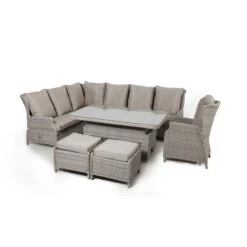 The double ribbed rounded weave in the shade of Stone evokes images of natural beauty and durability. The Reclining Corner Dining Set with Rising Table presents a unique opportunity to blend together two disparate elements – lounging and dining. This set is perfect for those who wish to entertain their guests in a comfortable and relaxed setting without having to shift around furniture. Whether you’re hosting a family dinner, a barbecue with friends or a quiet afternoon tea, this dining set will ensure that you and your guests have a comfortable and stylish experience. So why not invest in a design that is timeless, versatile, and built to last?