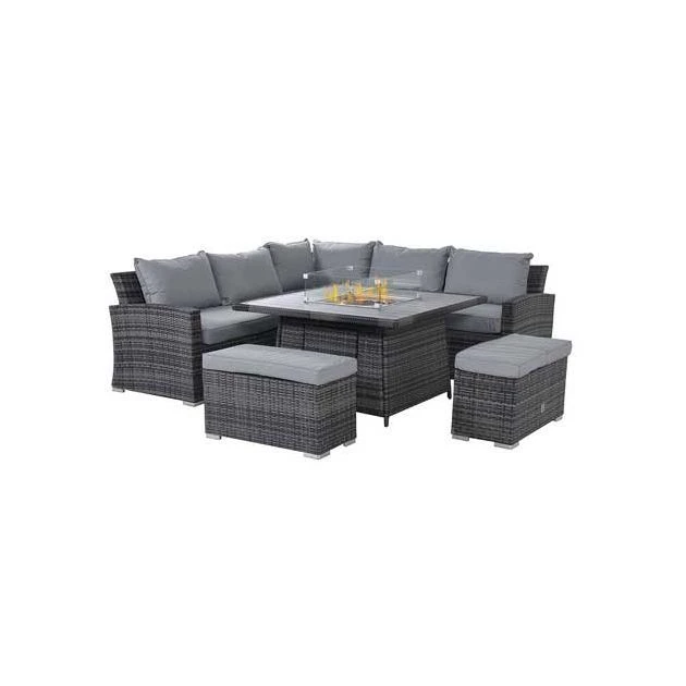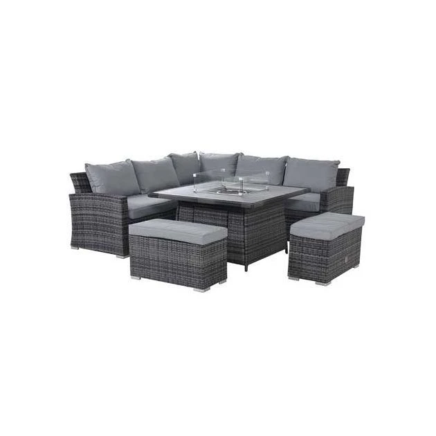 Maze Rattan Kingston Corner Deluxe Corner Dining Set With FirePit Table Grey: