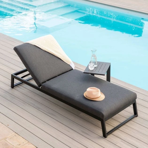 Maze Lounge Allure Sunlounger: The Allure Sunlounger by Maze Rattan comes in this attractive, streamline design perfect for using in the summer months for ultimate relaxation and also allows you to top up on your tan. The Maze Rattan Sunlounger features metal stoppers to adjust it to different heights depending on whether you want to be sitting up higher. The Allure Sunlounger is made with a sturdy aluminium frame with a powder coated to prevent rust and a deep cushion for added support and comfort made with an all-weather acrylic fabric.