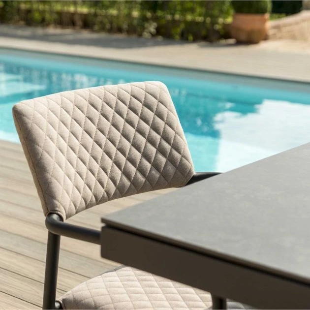 Maze Lounge Bliss 6 Seat Rectangular Dining Set: The Maze Rattan Bliss Dining Set is perfecting for providing an area for friends and family to socialise and al-fresco dining in the summer months. The Bliss Dining Set features high quality filled base and back cushioned chairs with a quilted finish and armrests for a comfortable and supportive design. The Maze Rattan Set also includes a stylish and practical 1.6m table with a spray stone top for a modern finish and the dining chairs feature a stackable design to be stored away easily in a compact design.