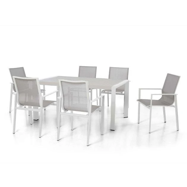 New York Rectangular Dining Set Aluminium White 6 Seater: