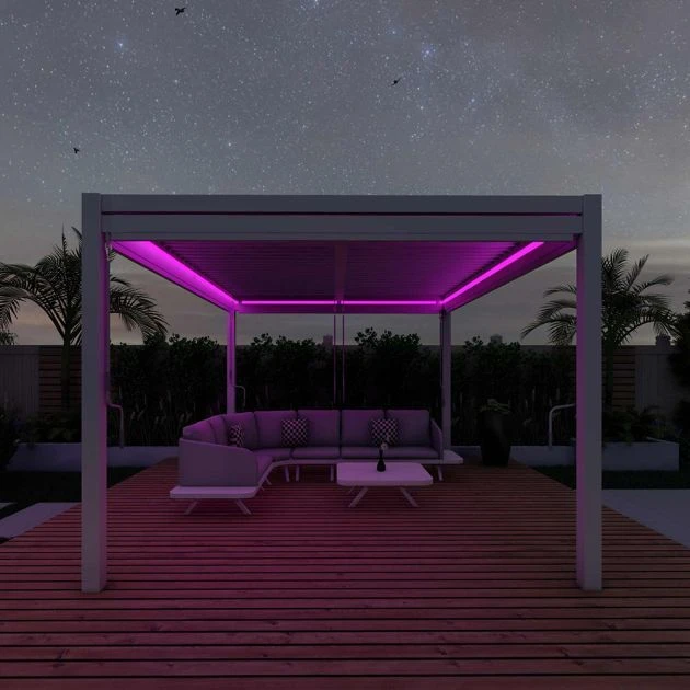 Effortlessly operating blinds is essential for many households, as it allows for privacy and protection from the sun’s rays. That’s why our blinds come with a simple crank handle, allowing you to lower and raise your blinds to your desired level with minimal effort. Additionally, we understand that lighting changes the mood of a room and that LED lighting can help set the perfect ambiance. Therefore, we’ve integrated remote-controlled mood lighting strips around the perimeter of our gutter system. With the ability to adjust the colour, brightness, and even automated colour changing options, you can effortlessly create the ideal ambiance for any occasion. The gazebo would require a 240-volt socket for the lights to be activated. In addition, it requires 2 people to assemble and the suggested build time is 2hrs.