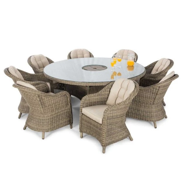 Maze Rattan Winchester 8 Seat Round Dining Set with Rounded Chairs, Ice Bucket & Lazy Susan:
