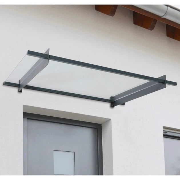 Nancy 1500 Door Cover – Dark Grey: Welcome guests into your home under this sophisticated, modern style door cover. The nearly indestructible, crystal clear panel guarantees you receive plenty of light whilst offering protection from rain, snow and hail. The panel also blocks 100% of UV rays, avoiding discolouration which ensures a long lasting, attractive appearance. The high-grade, dark grey galvanised steel frame is incredibly rust and corrosion resistant, having been treated with a premium powder coating. The discrete rubber gasket ensures a waterproof seal between the door cover and wall surface, preventing any leaks. This door cover has been specially designed for easy DIY home assembly requiring no specialist tools and. 3 Year Warranty comes as standard.