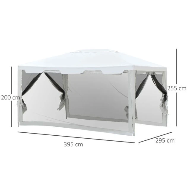 Outdoor Garden Party Marquee Tent with Mesh Sidewalls White 3 x 4m: