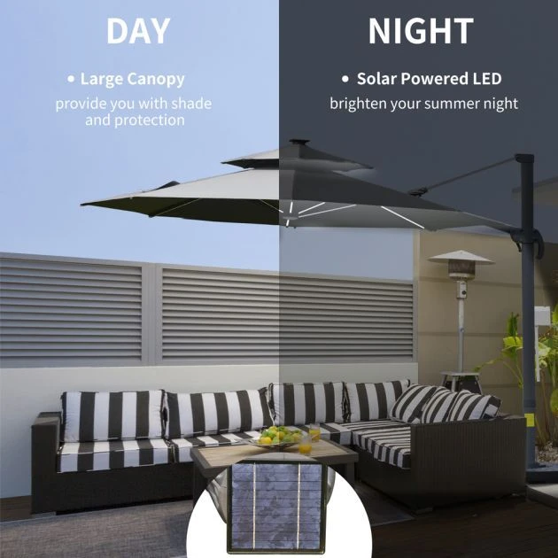 Innovation meets protection with this three-in-one Cantilever parasol from Outsunny.