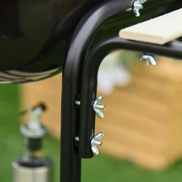 Impress your guests whilst cooking up delicious food with this beautiful and sleek outdoor grill from Outsunny. Constructed using steel, this piece has been built to last thanks to its enhanced strength and stability. With a porcelain coat on lid and body with air vents on the top, ensuring food is cooked evenly and quickly. An extra air vent on the bottom helps to control the charcoal burning level for added safety. Finished with two wheels, it’s the perfect item for your summertime parties, BBQs, picnics and more.