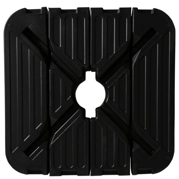 - Four-piece plastic parasol base secures cantilever roma parasols.