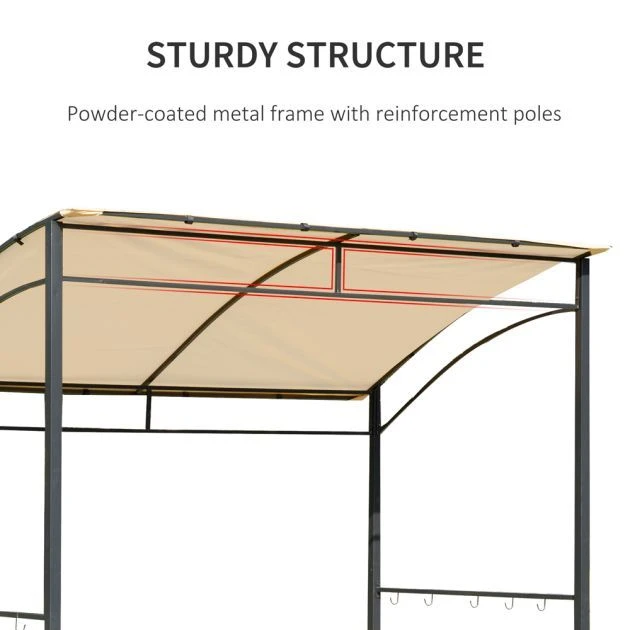 - With hooks hung on side beams for placing BBQ tools.
