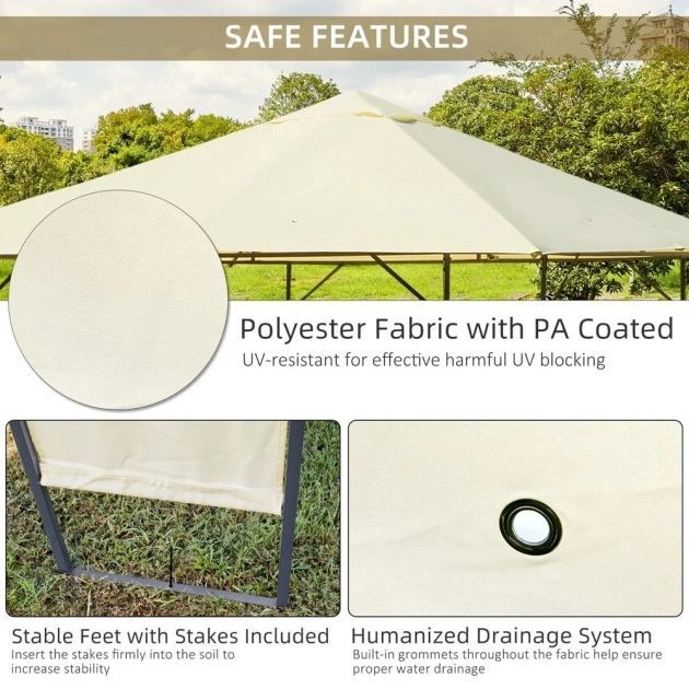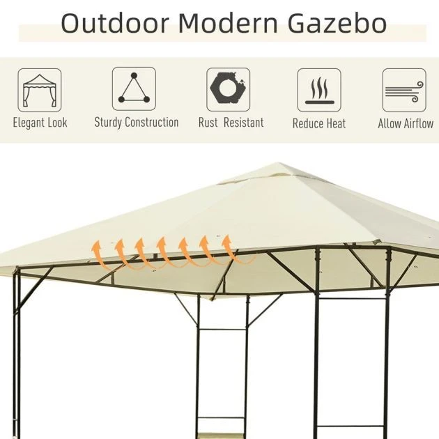 This garden gazebo from Outsunny is a great way to effectively create a shaded area outside when you should require it. It is constructed using a strong metal frame which is covered by a heavy duty water resistant PE canopy to keep you and loved ones protected from rain, sun and leaves
