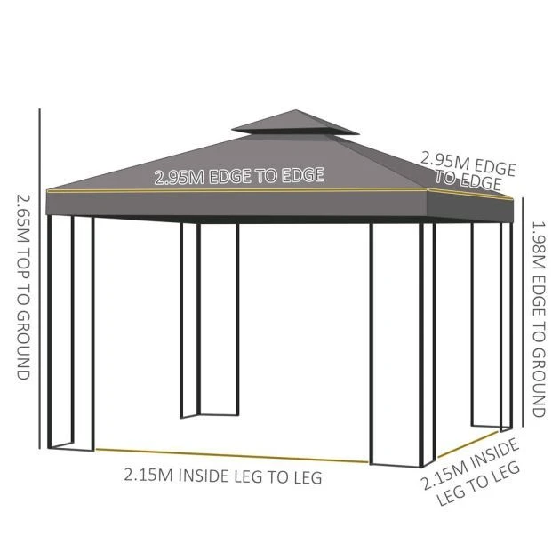 This Outsunny’s Gazebo is a great way to upgrade your outdoor space with elegance.You can entertain your friends and family members to hold the party or just relax and enjoy the conversation. It features the solid metal frame with the UV resistant polyester canopy for superior strength and ultimate shade cover. With this functional and stylish gazebo, you will appreciate escaping to the shady sanctuary in your own backyard, garden or other outdoor space!