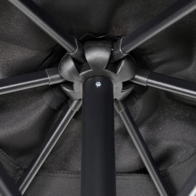 - Aluminium frame to keep parasol upright, connected to the canopy with six steel ribs.