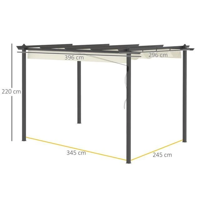 Create a relaxing space outdoors with the retractable garden pergola and get the most rom your summer. The retractable pergola allows you to adjust the canopy as you desire to enjoy the sunshire or escape and relax in the shade. the 4m x 3m footprint alows for a large shaded area should you want it, big enough to shield the whole family from the sun should you wish to.