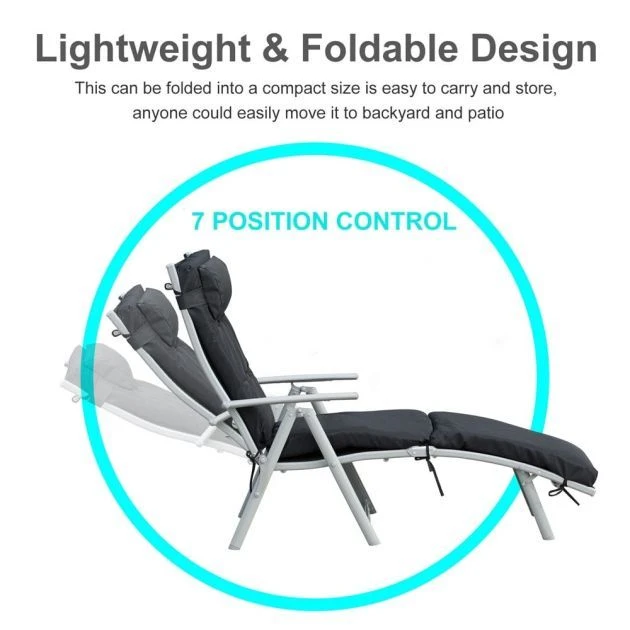Bring classic comfort to your garden with this sun lounger from Outsunny. Using sturdy and thick steel to form the frame, it is able to handle up to 160kg effortlessly, with its design featuring a seven-level adjustable back for in-control support, a thick, removable cushion seat for all-day comfort and a detachable pillow to give your head a spot to lean back on. Foldable in design, you can move and store this lounger very easily, making it just as convenient as it is functional. A great way to spend your day soaking up the sun.