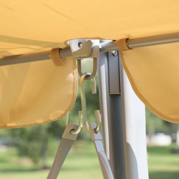 Enjoy your time in your garden, backyard or balcony on the comfortable swing chair from Outsunny. You can relax on the padded seat with back cushion and soft pillows or easily remove them and enjoy the cool glider feelings on the sling fabric seat. The adjustable canopy top helps provide an ideal shaded area.