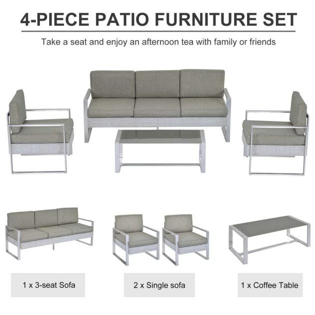 Outsunny provides high level of patio furniture sets both in terms of quality and services. This 4-piece sofa set fits up to 5 adults comfortably and adds the perfect experience to any outdoor space. The solid aluminium construction is sturdy and durable for outdoor use. You can have a breakfast, afternoon tea, conversation with your family or friends in the open air. Designed for better enjoying your leisure time!