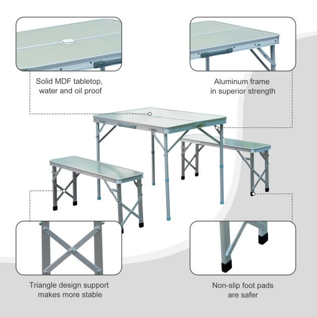 | Product Specification | Portable Picnic Table with Folding Bench Silver 3 Pack: