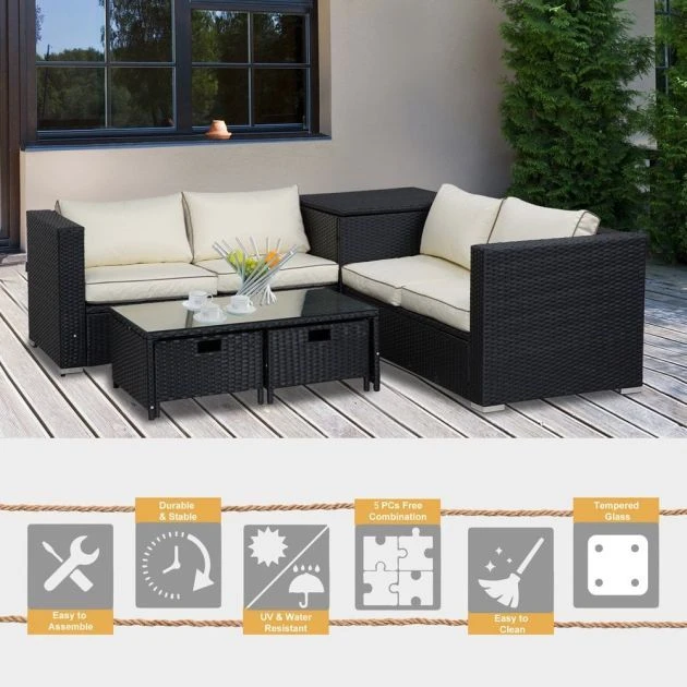 | Product Specification | Rattan Sofa Storage Set Black 4 Seater:
