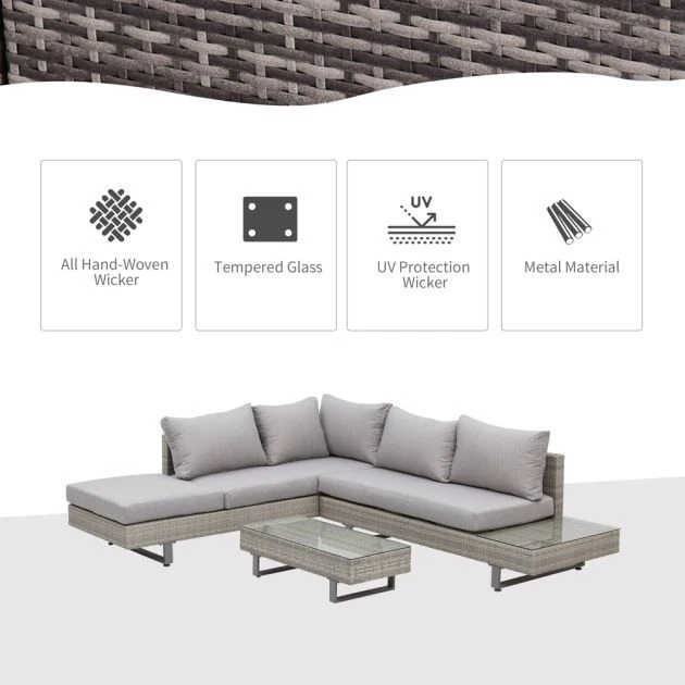 If you’re in need for a stylish and comfortable garden seating set, this set from Outsunny would be perfect for you. The set consists of a two seater sofa, a three seater sofa and a matching table. All three components of this set can be arranged in accordance of your own preference as they are free standing and are in no way fixed to the ground. The three pieces consist of a rattan and metal frame construction, ensuring durability and comfort, whilst also looking appealing. Each piece of furniture also comes with thick padded cushions on the seats and backs to allow you to relax comfortably for hours on end, the two seat sofa s finished with a small end table for additional room for drinks and snacks.