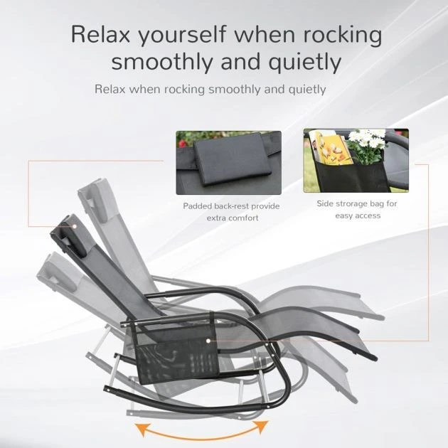 This outdoor rocking chair from Outsunny is a great way to relax outdoors. The curved frame has been made with your body comfort in mind, hugging to the contour of its shape. The seat is wrapped in mesh fabric which holds yours body in place, with a detachable top pillow for head and neck comfort. It’s finished with a detachable side pocket, keeping everything you need next to you and rubber pads on the high quality steel frame for protection.