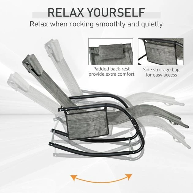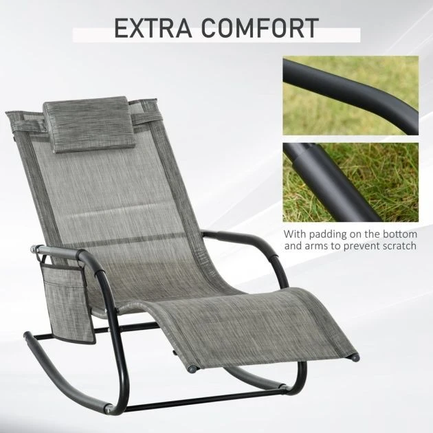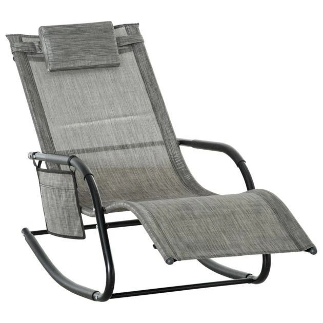 This outdoor rocking chair from Outsunny is a great way to relax outdoors. The curved frame has been made with your body comfort in mind, hugging to the contour of its shape. The seat is wrapped in mesh fabric which holds yours body in place, with a detachable top pillow for head and neck comfort. It’s finished with a detachable side pocket, keeping everything you need next to you and rubber pads on the high quality steel frame for protection.