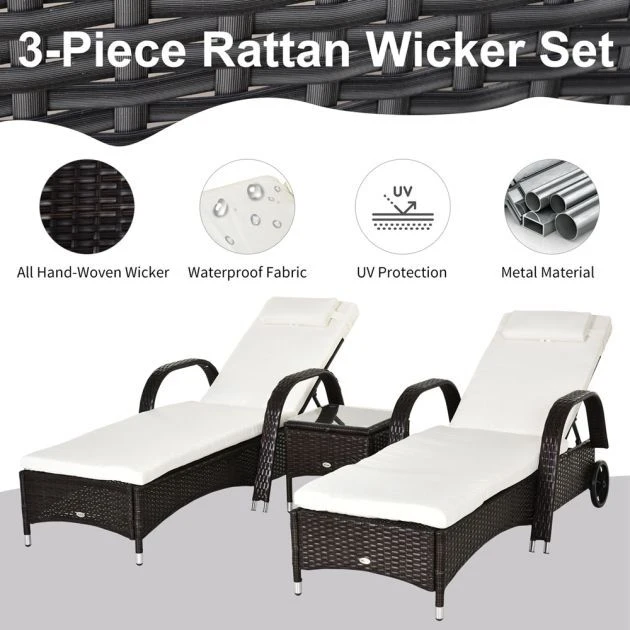 | Product Specification | Steel Frame Rattan Adjustable Sun Lounger Set – Brown Dimensions: