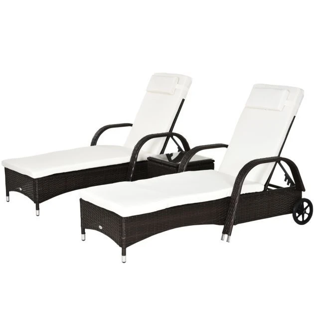 Steel Frame Rattan Adjustable Sun Lounger Set – Brown: