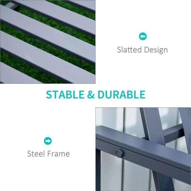 Complete garden and outdoor areas with this two-seat bench from Outsunny. Made from metal, the structure is sturdy and tough for daily use all-year round. Whilst it’s pretty simple to look at, the line design on the back, combined with the grey colour, gives it some character so it stands out wherever you decide to place it. The tall back and armrests give your body support as you sit. Finished with a large balanced base for stability.