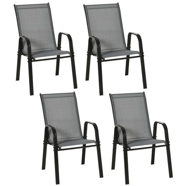 Relax outdoor with a friend, thanks this set of four garden chairs from Outsunny. Ergonomic design of high back and armrests to support your body. The breathable mesh fabric is comfortable. The stackable design makes it compact for easy storage. Sit back and relax.