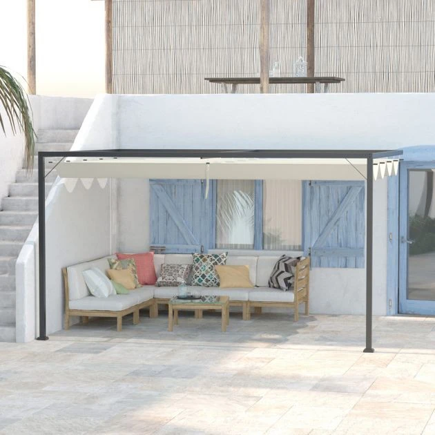 Outdoor Wall Mounted Pergola with Retractable Canopy Beige 3m: