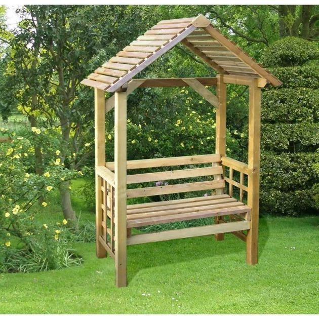 Pantheon Athena Timber Garden Arbour: This traditional garden arbour with half lattice panelled side panels which is perfect for climbing plants. An perfect feature in the garden to and a retreat to read a book or while away those sunny afternoons. Includes a 7 year manufacturers guarantee against rot.