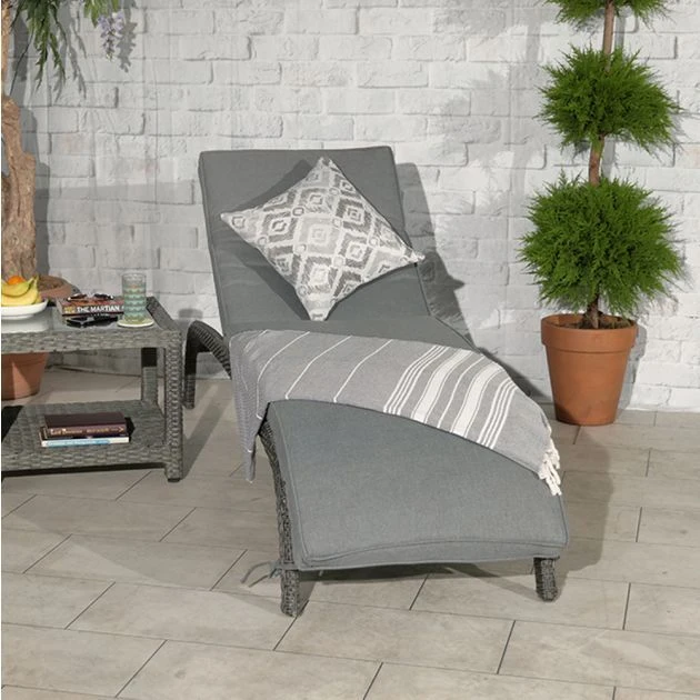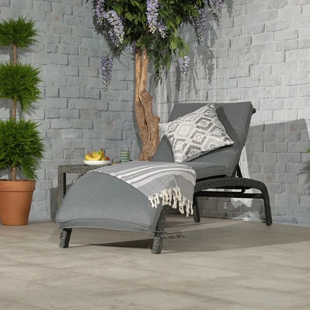 Royalcraft Paris Adjustable Sunlounger: The Paris Adjustable Sunlounger by Royalcraft is perfect for lounging around in the warmer months catching the sun. The Royalcraft Sunlounger comes in an attractive slate grey, made with double half round wicker and is hand woven onto an aluminium frame for added strength. The Paris Lounger features a curved design and has a manual multi-position backrest and weather shield fabric cushions for optimum comfort and support.