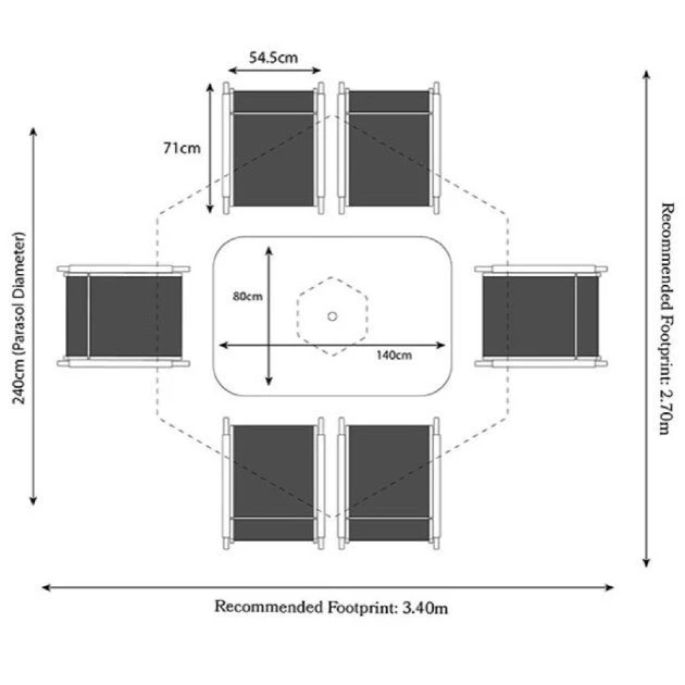 Royalcraft Rio Recliner Dining Set with Parasol 6 Seater: Dimensions: